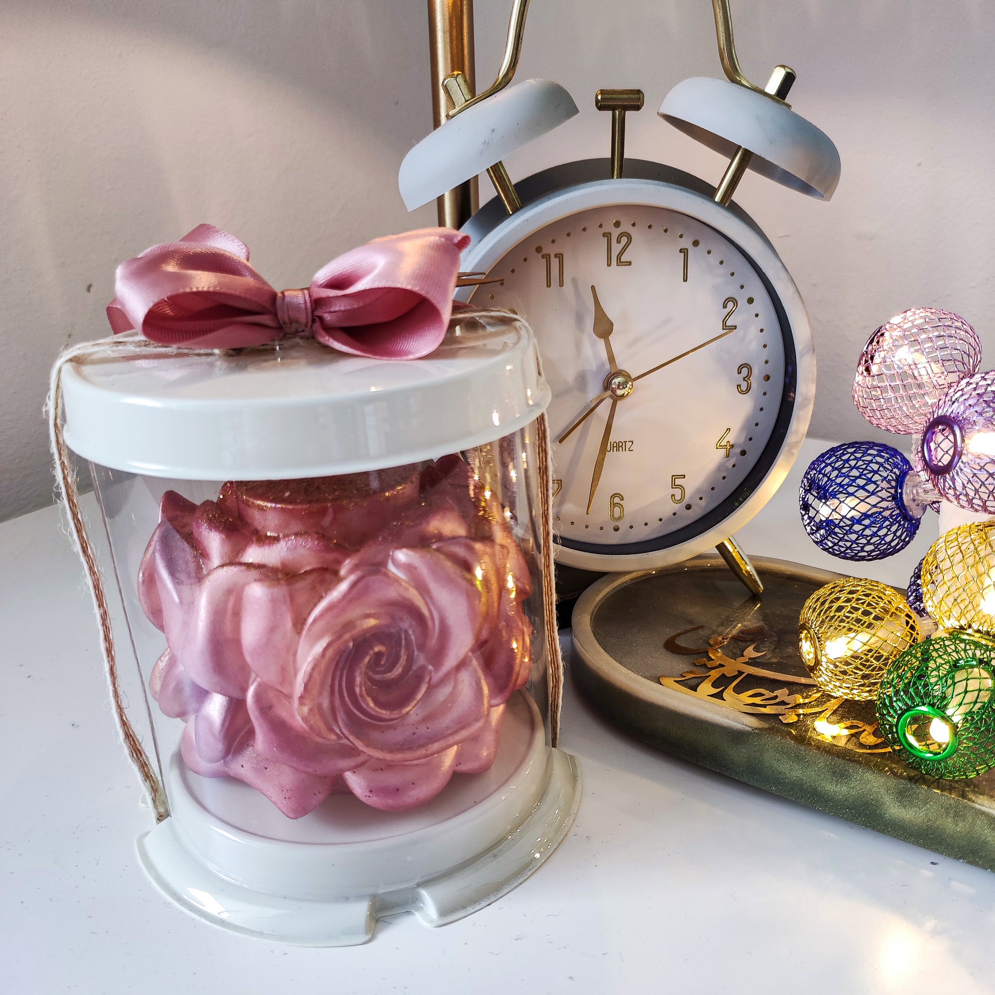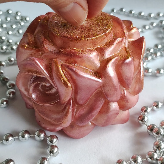 Handmade Candle with Three Flowers – Pink & Gold in Luxury Gift Box