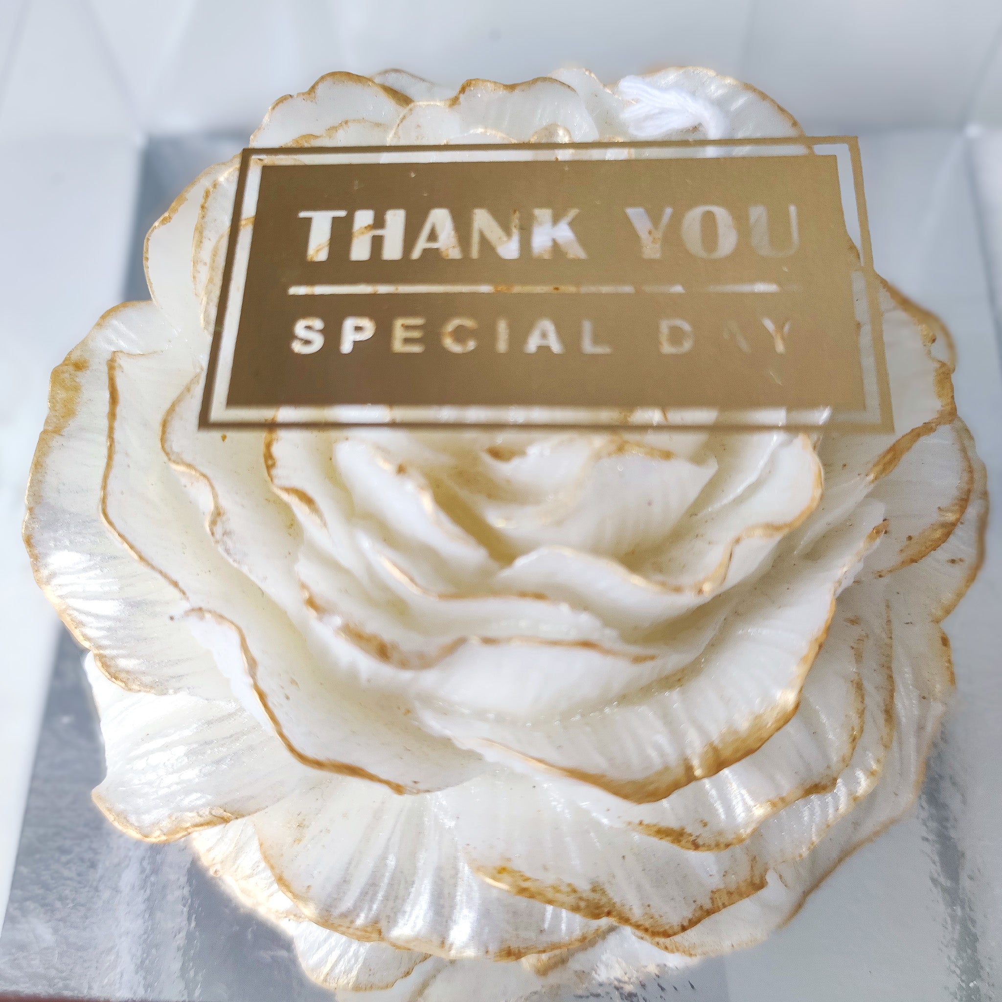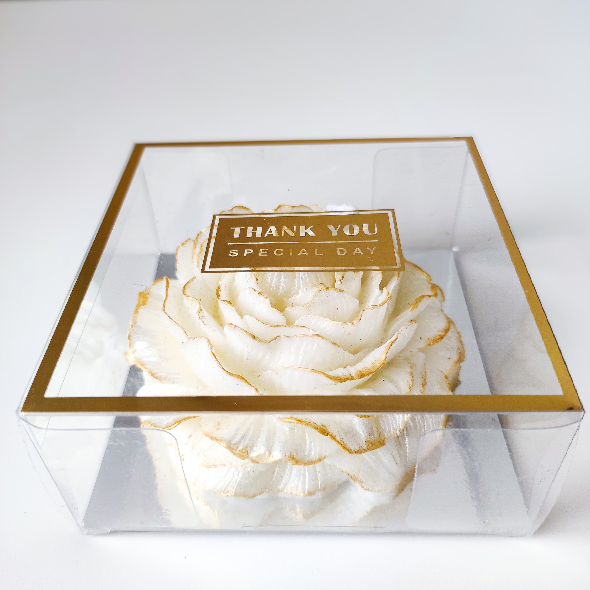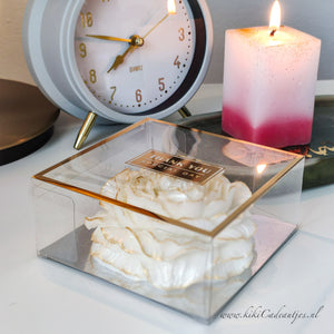 Luxe Geurkaars in Vorm van Witte Ranonkel – Handgemaakt met Gouden Rand
