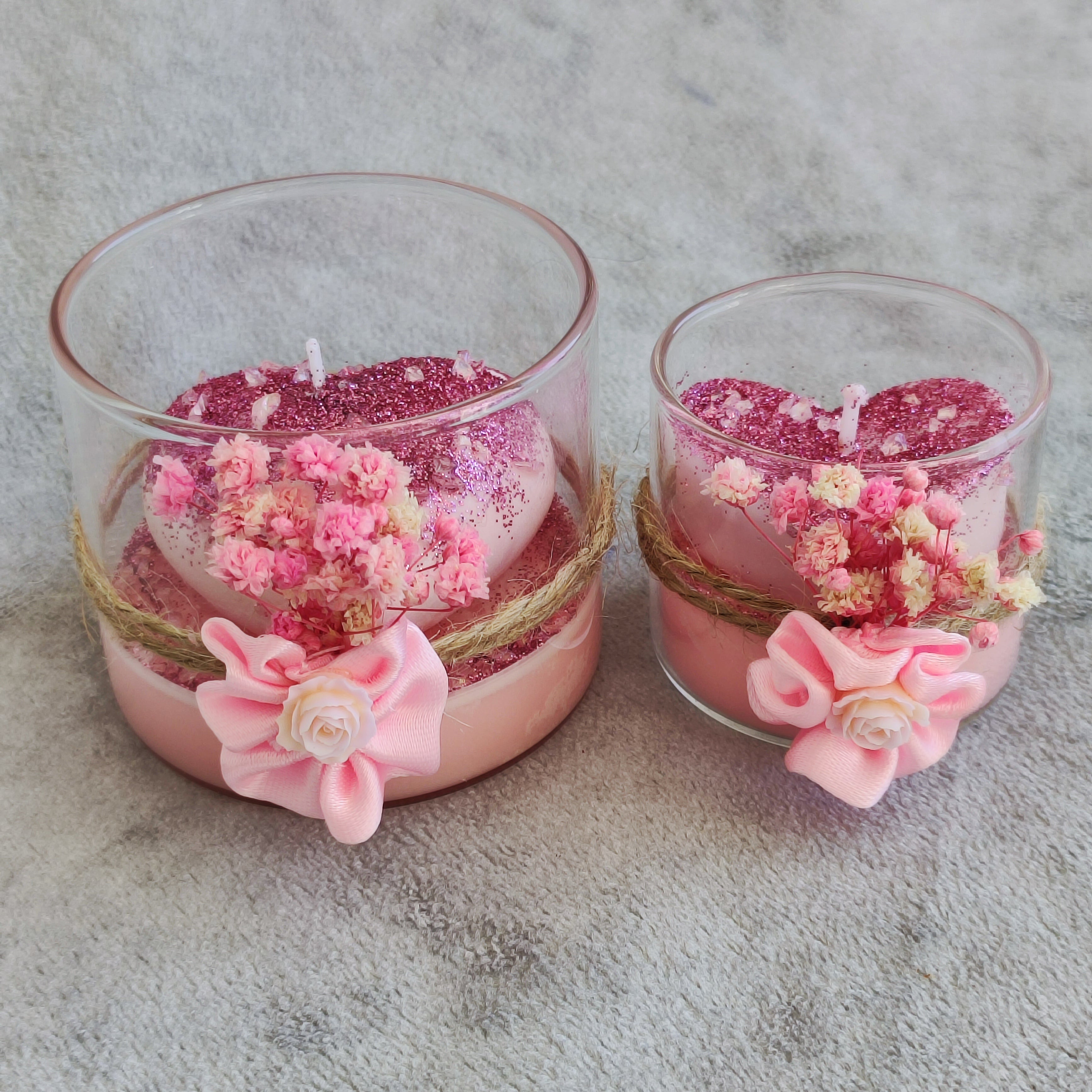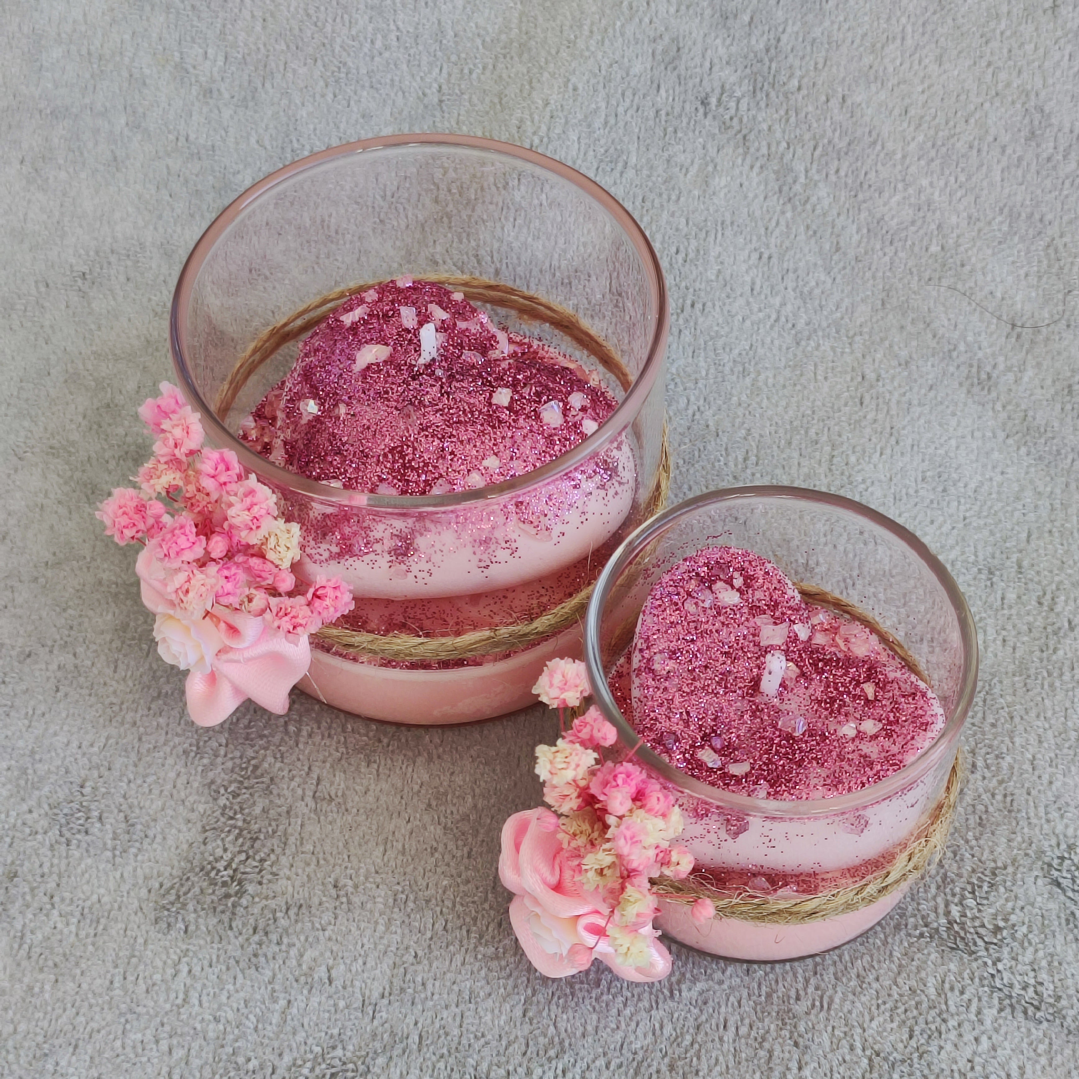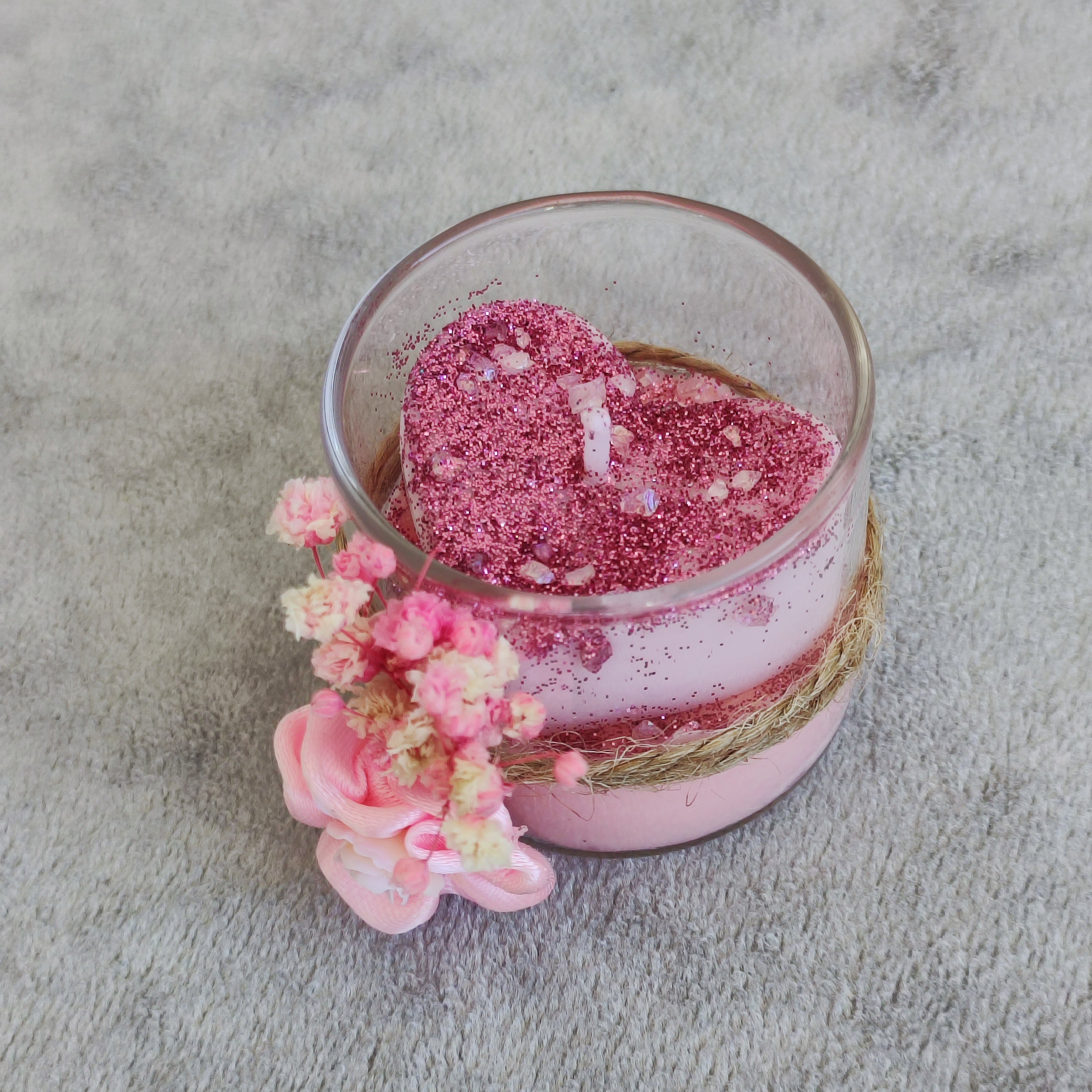 Roze Hart Kaars in Glazen Pot – Handgemaakt met Rozengeur & Sojawas